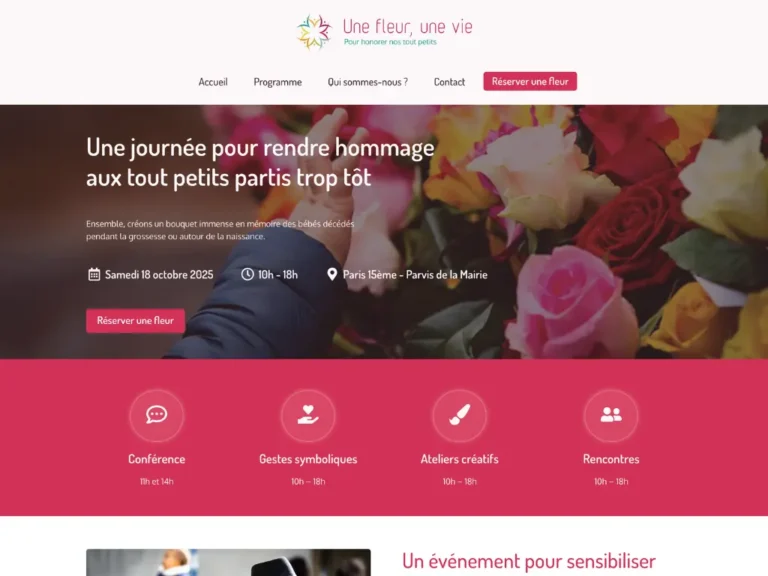 Refonte du site d’un événement annuel autour du deuil périnatal. Le site, trop complexe et sans maintenance, n’était plus fonctionnel. La refonte a permis de le simplifier, l’améliorer et le remettre sur pied.